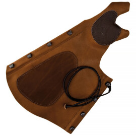 - Chránič paže - Chrání paži před dopadem tětivy na ruku. Zároveň zabraňuje ztržení tětivy o součásti oděvu na paži. Měl by být vzdušný a nízký.