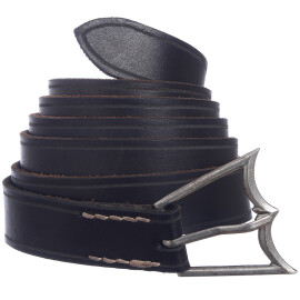 Doplňte své autentické středověké šaty na LARP, dřevárnu, SCA nebo cosplay koženým páskem ve středověkém stylu. Spolehněte se na vysokou kvalitu provedení z pevné kůže, která vydrží i drsnější zacházení. Středověké opasky dotváří krásně zdobené spony a přezky nebo takové detaily, jako jsou mosazné kuličky nýtované na opasek přes mosazné podložky.