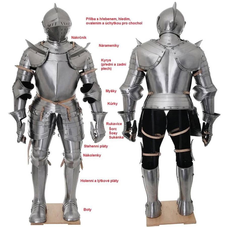 VÍš, ŽE… hmotnost plátové zbroje dosahovala klidně 40–50 kilogramů? I pro statnějšího válečníka tak představovala značné břemeno. I proto rytíře na výpravách doprovázel věrný panoš, který mu byl vždy po ruce.