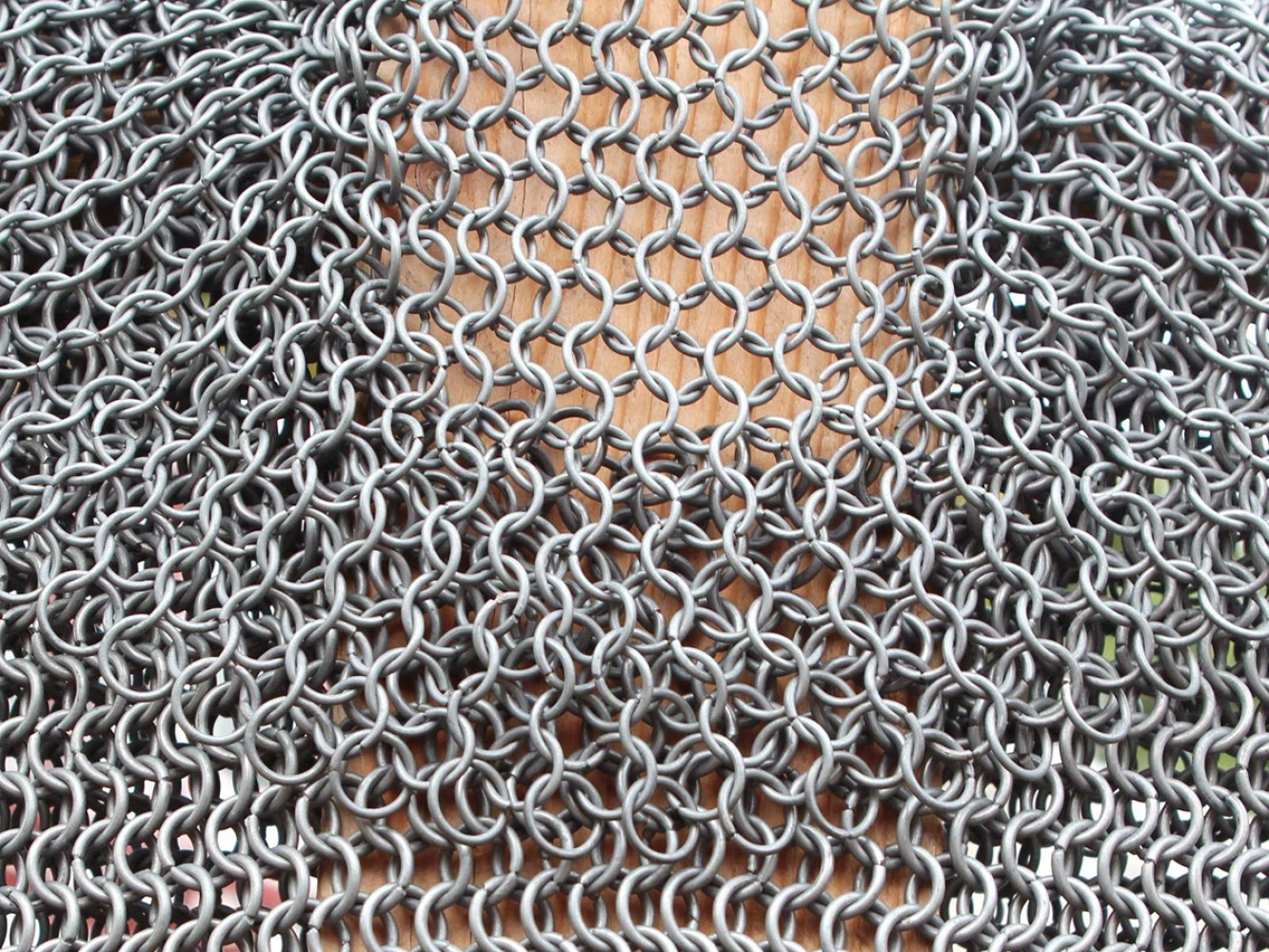 - Nerezová ocel – moderní materiál, který nekoroduje, takže se o zbroj nemusíte tak důkladně starat. Kroužková košile z nerezové oceli mívá stříbřitý lesk, který někteří milovníci historické zbroje považují za nepřirozený – a raději volí košili z původních materiálů.