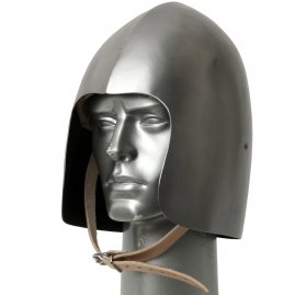 U nás na e-shopu najdeš mnoho různých tvarů přilbic, např. Vikinské přilby (ty byly zakulacené a zpravidla mívaly nánosník, který chránil nos), žebrové přilby (také byly zakulacené, ale skládající se z vrstvených plátů, tyto přilby měly také nánosník a pohyblivé lícnice, které chránily tvář a uši) Normanské a kónické přilby (byly tvořeny z jediného zvonu, nebyly kulaté, také měly nánosník a mezi známé patří přilba sv. Václava).