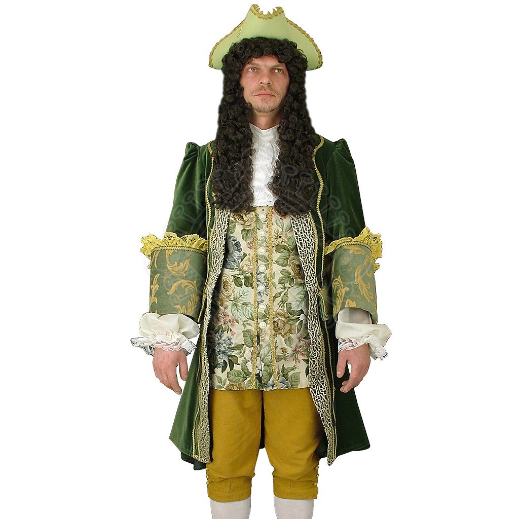 Pánská móda se v první polovině 18. století přizpůsobila tendencím dámské módy; byla velmi dekorativní, až zženštilá. Základem pánského oděvu zůstával nadále kabátec typu justaucorps, vesta a kalhoty. Feminizací byl nejvíce poznamenán