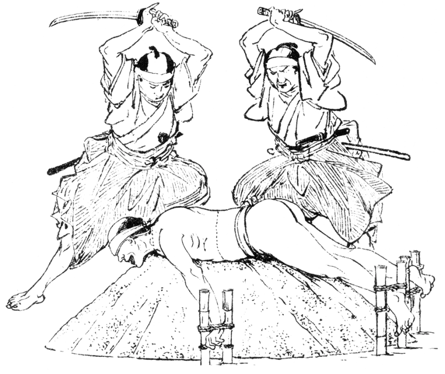 - Gyaku kesa giri – diagonální sek vedený od spodu nahoru,