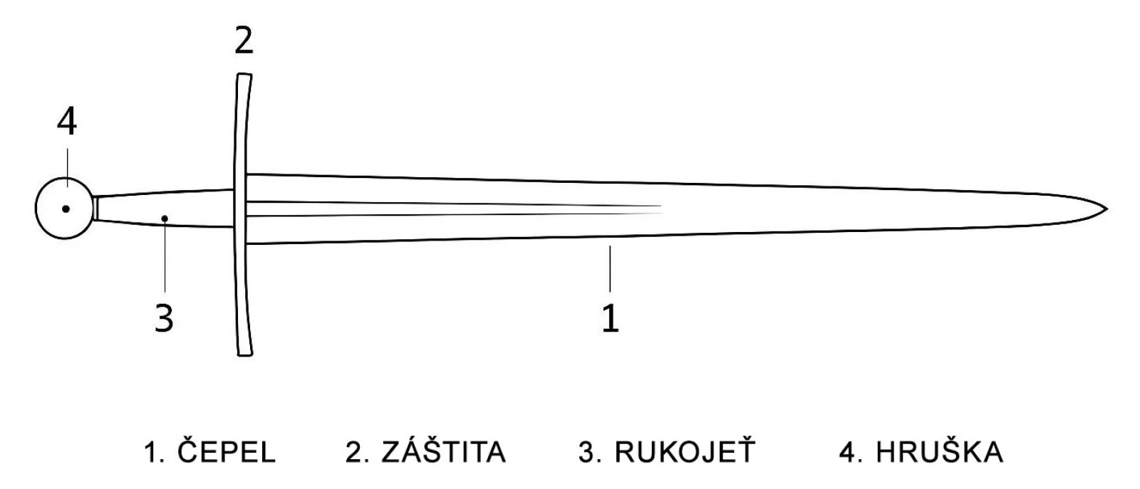 Přestože se v průběhu středověku objevily desítky různých variant mečů, jeho základní části zůstaly prakticky neměnné.