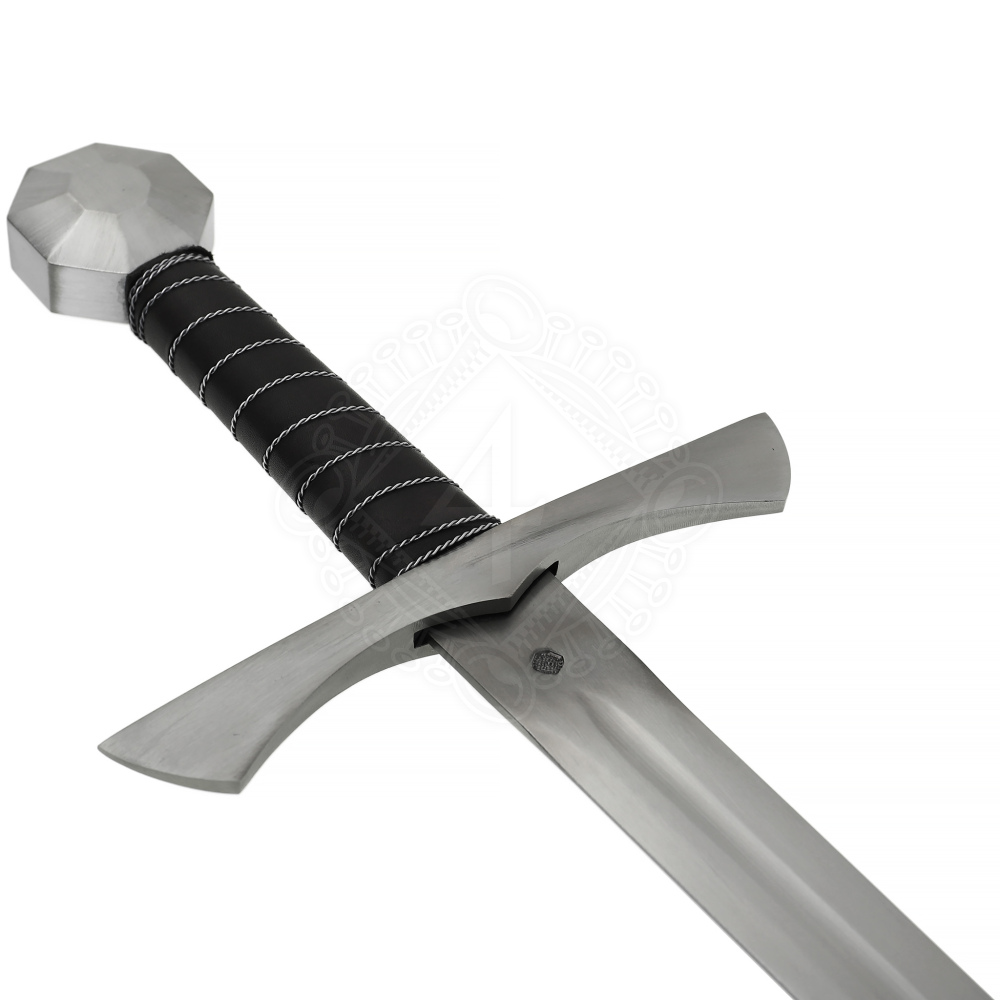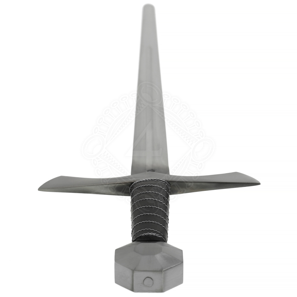 Meč Carret disponuje rovnou, dvousečnou čepelí o délce 78 cm z pružinové oceli ČSN 14260, která je kalená v oleji na osvědčenou tvrdost okolo 47 HRC – typický znak kvality zbraní od Pavla Leiera. Čepel se plynule zužuje ke špičce a je opatřena středovým žlábkem o délce 47 cm. Charakteristickým rysem je široká, rovná ocelová záštita o délce 23 cm, jejíž ramena se směrem ke koncům mírně rozšiřují. Rukojeť o délce 14,5 cm je tvořena ocelovým jádrem (stopkou čepele), které je obloženo dřevem a následně pevně ovinuto kvalitní hovězí kůží. Spirálový ovin z drátu nejen zdobí rukojeť, ale také zlepšuje úchop. Meč zakončuje výrazná, mnohostranně fasetovaná osmiúhelníková ocelová hlavice o průměru 6 cm, která efektivně vyvažuje čepel. Zkušenosti a preciznost Pavla Leiera jsou patrné na každém detailu tohoto meče.