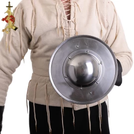 Pukléř je obranná zbraň, která se používala od 12. století do 18. století. Je dobře známo, že byl o takovýto obranný předmět zájem i mezi civilním obyvatelstvem, neboť bylo s jeho možností odvracet útoky zbraní všeho druhu. Navíc v porovnání s vojenskou verzí se jednalo o odlehčený, a tudíž snáze manipulovatelný a přenositelný obranný prostředek. Pukléř z tvrzené (vařené) kůže je zmiňován v mnoha písemných zdrojích. Často se píše o „cuir bouilli“, což je výraz pro vařenou kůži. Tento osvědčený pukléř představuje kompromis mezi účinnou ochranou a nízkou hmotností. Více informací k produktu ...