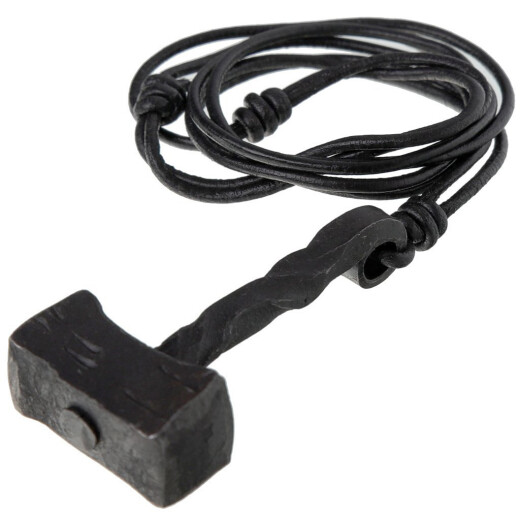 Ručně kovaný přívěsek Thorovo kladivo Mjölnir na koženém řemínku