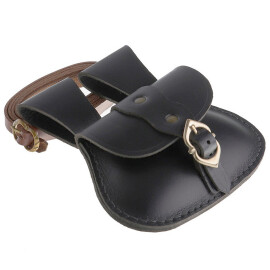 Tato opasková brašna je navržena s důrazem na praktičnost a odolnost. Na zadní straně najdeš dvě pevná, nýty zesílená poutka, která umožňují snadné a stabilní připevnění na opasek o šířce až 6,5 cm. Brašna tak pevně drží na svém místě a nepřekáží ani při chůzi či běhu. Hlavní klopa se jednoduše, ale bezpečně uzavírá pomocí pružné šňůrky, která se ovine kolem velkého, dekorativního knoflíku z mosazi s patinovanou úpravou. Tento mechanismus je nejen funkční, ale dodává brašně i jedinečný historický charakter.