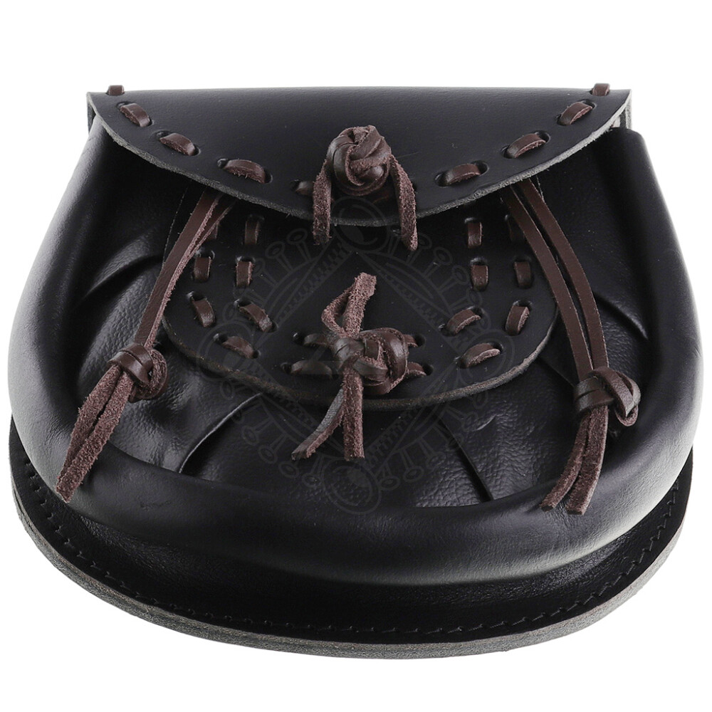 Kožená opasková brašna ve stylu sporranu, zdobená proplétáním