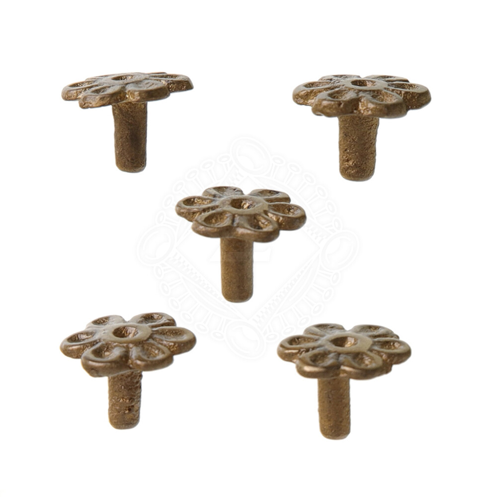 Tato sada pěti středověkých nýtů na kůži Rozeta se hodí na nanýtování na opasek, klopu brašny, kožený postroj nebo zbroje. Ozdobte si opasek originálním způsobem. Na zadní straně každé růžice je dřík, který je třeba na podložce s rozklepat kladívkem s kulovou hlavou. Více informací k produktu ...