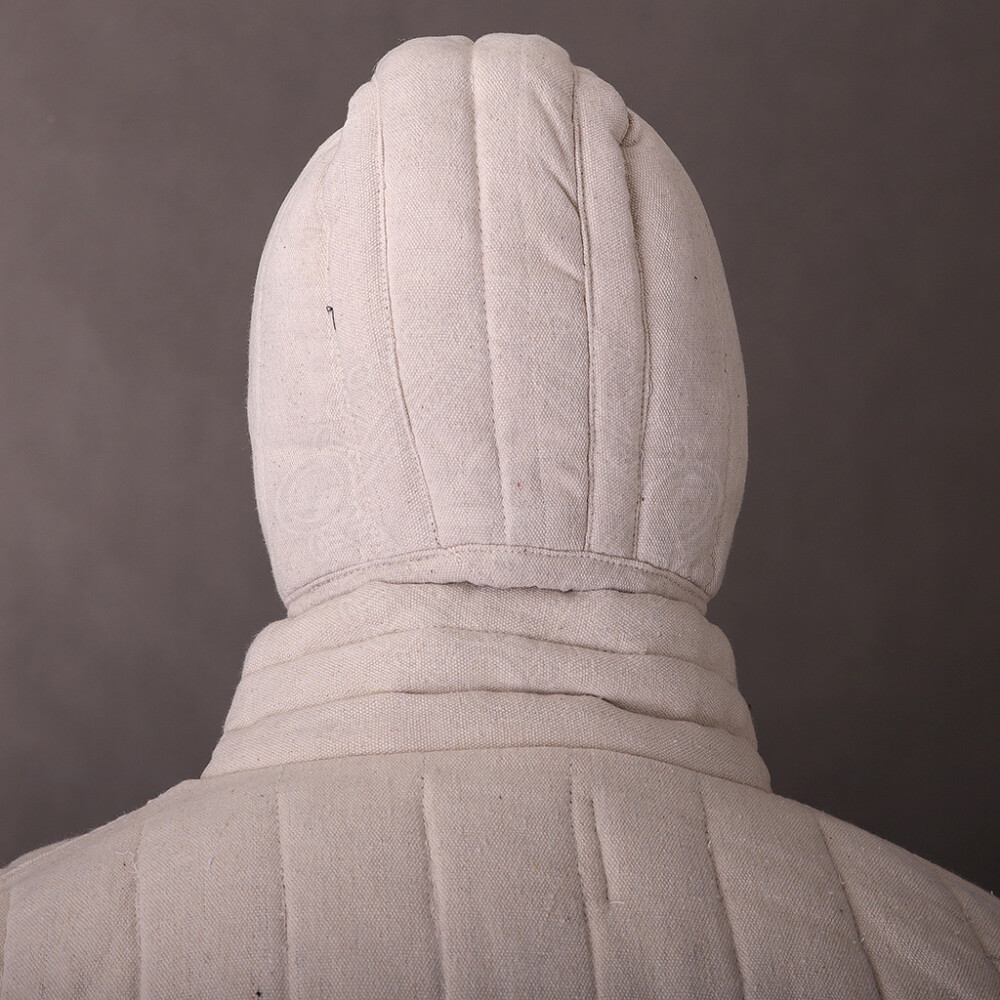 Tento prošívaný čepec, historicky známý též jako kukla či kapuce, je vyroben z dvou vrstev odolného bavlněného plátna. Mezi nimi se nachází několik vrstev polstrování z recyklovaných textilních vláken, které efektivně pohlcují energii z úderů. Svislé prošívání zajišťuje, že výplň drží na svém místě a zachovává si svůj tvar i při náročném používání.