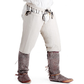 Nosíš plátové nohy nebo kroužkové nohavice a vadí ti, jak se váha zbroje bolestivě zařezává do boků? Tento pozdně středověký polstrovaný pás, známý jako "Lendenier", je přesně to, co potřebuješ. Nejde jen o kus látky, ale o zásadní kus zbrojní výstroje navržený pro optimální rozložení váhy tvé ochrany nohou. Je vyroben ze 100% přírodní bavlny s robustním vertikálním prošíváním a vnitřním polstrováním, které tlumí nárazy a zabraňuje odřeninám. Klíčové jsou kožené výztuhy v namáhaných bodech – ty slouží jako kotvící body pro tkanice (tzv. "nestle") a zabraňují vytržení látky. Díky tomuto pásu bude tvá zbroj sedět pohodlně a bezpečně po celou dobu bitvy. Více informací k produktu ...