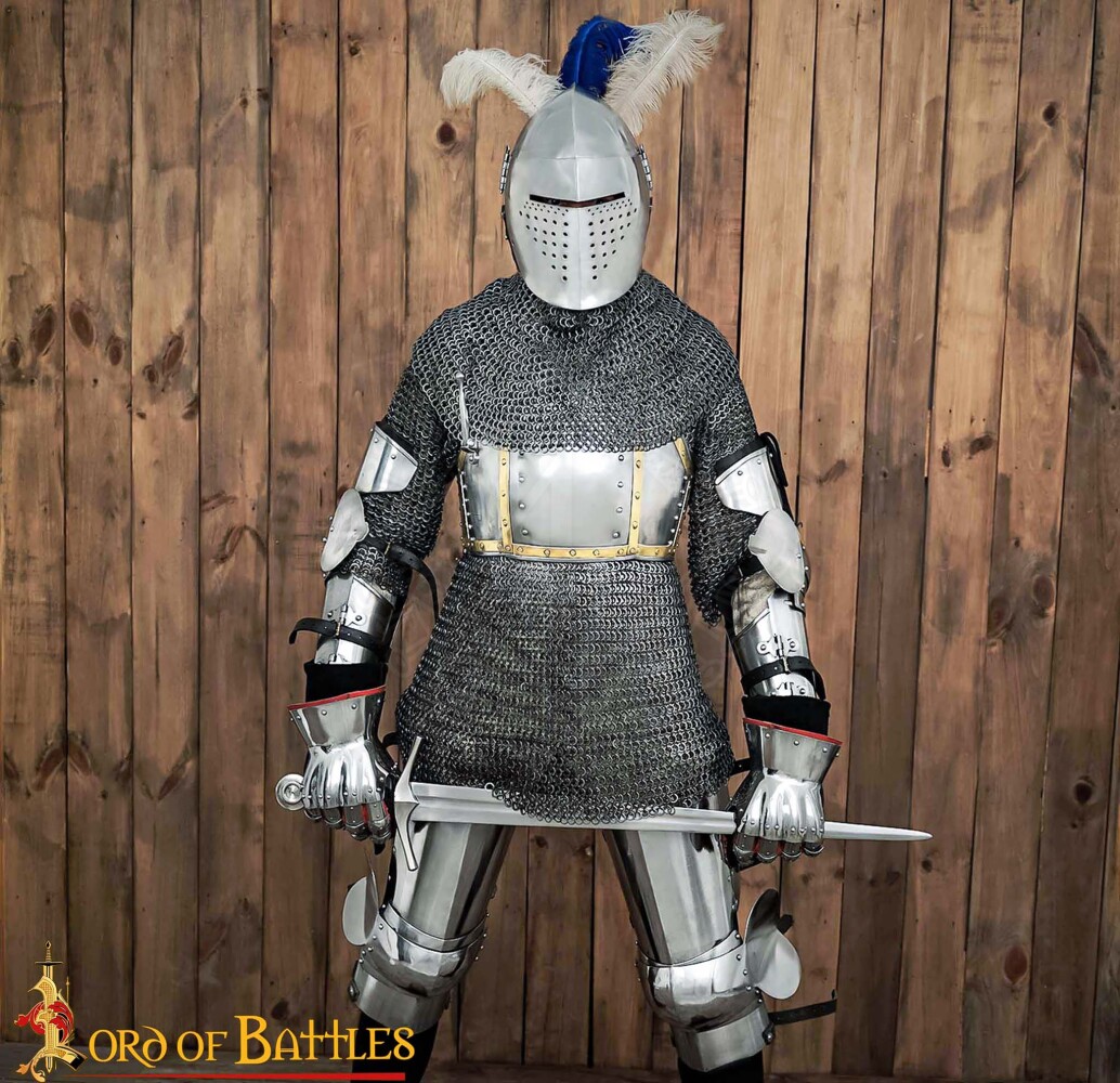 Tato zbroj je z konstrukční oceli s přírodním (olejovaným) povrchem, aby se zabránilo korozi. Vyžaduje tvou péči.