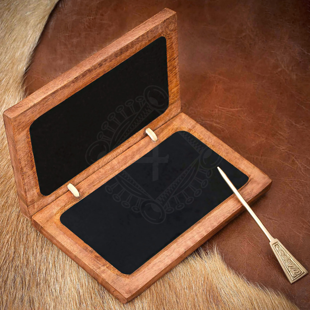 Přeneste se do dob římského impéria, kdy se zprávy nenosily v telefonech, ale vyrývaly do vosku. Tato věrná replika římské voskové tabulky, odborně zvaná diptych, ti umožní zažít historii doslova na vlastní kůži. Ať už jsi římský legionář píšící hlášení, středověký kupec počítající zisk, nebo mág sesílající runy na LARPu, tento doplněk dodá tvému kostýmu tu pravou hloubku a autentičnost. Sada obsahuje dvě dřevěné destičky spojené kůží a precizně zpracované mosazné rydlo (stylus). Je to ideální, ekologická a opakovaně použitelná pomůcka pro psaní, kreslení či tajné vzkazy, které lze jediným tahem navždy smazat. Více informací k produktu ...