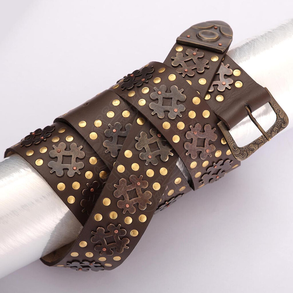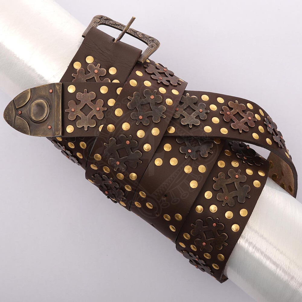 - Opasek okovaný 34 kytičkami, které jsou obklopeny vždy 8 mosaznými nýty