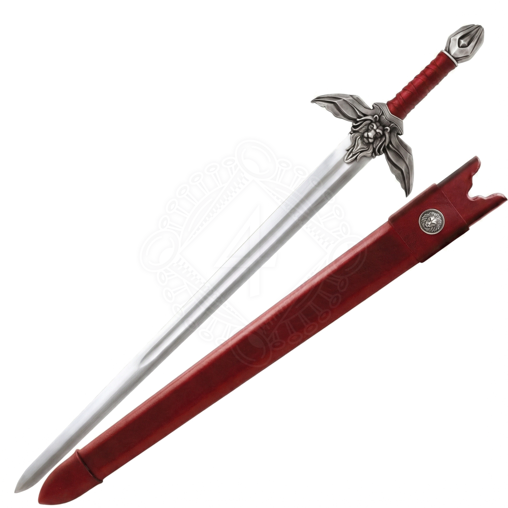 Windsong – Meč králů: Fantasy obouruční meč se lvem a krvavě rudou rukojetí