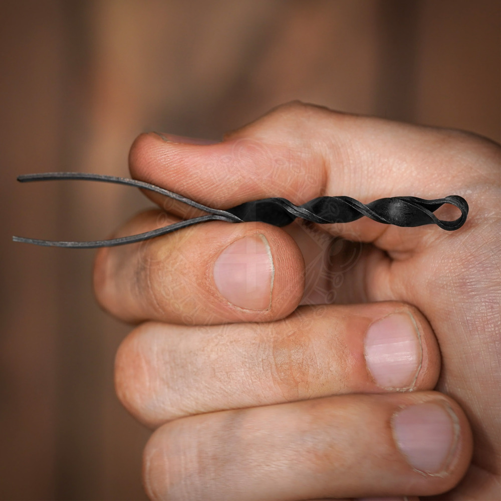 Tato pinzeta není jen "na oko". Je vyrobena s ohledem na praktické využití. Její čelisti k sobě precizně doléhají, což ti umožní vytáhnout i jemné třísky, trny, nebo si upravit vous a obočí před dvorskou slavností. * Autentický vzhled: Rustikální černěná povrchová úprava a torzírování (zkroucení) rukojeti dodávají nástroji punc ruční práce starých mistrů. * Kvalitní materiál: Na rozdíl od měkkého železa, které se časem ohne, je zde použita kalená pérová ocel. To zaručuje, že se pinzeta bude vždy vracet do původního tvaru a zachová si svůj stisk. * Všestranné využití: Kromě hygieny ji oceníš i jako šikovný nástroj při šití (vytahování nití), při práci s kůží nebo manipulaci s drobnými předměty u ohně. Očko na konci rukojeti není jen ozdobné – slouží k protažení koženého řemínku nebo k zavěšení na chatelaine (závěsný systém na opasek), takže ji budeš mít vždy po ruce a neztratíš ji v hlubinách měšce.