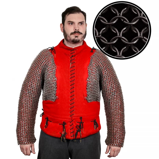 Vylepši svou plátovou zbroj k dokonalosti! Tento pár kroužkových rukávů, historicky známých jako vložky či „voidery“, je naprosto nezbytným doplňkem pro každého, kdo sestavuje rytířský postroj (harnisch) z období 14. a 15. století. Jsou navrženy tak, aby se přišily nebo přivázaly k prošívanici či oděvu pod zbroj (arming doublet) a precizně kryly zranitelná místa v podpaží a na vnitřní straně paží, která samotné pláty chránit nemohou. Jsou vyrobeny z kroužků z kalené oceli, což představuje významný skok v ochranných vlastnostech oproti běžné měkké oceli. Více informací k produktu ...