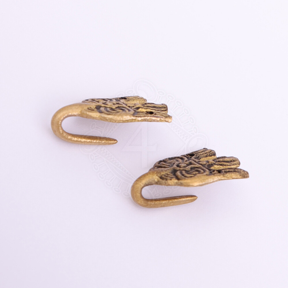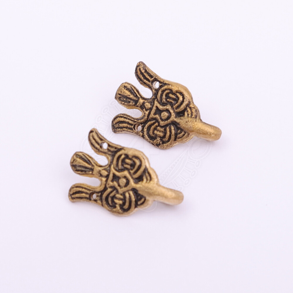Vikinské háčky na ovinovačky, motiv havrana, mosaz, pár