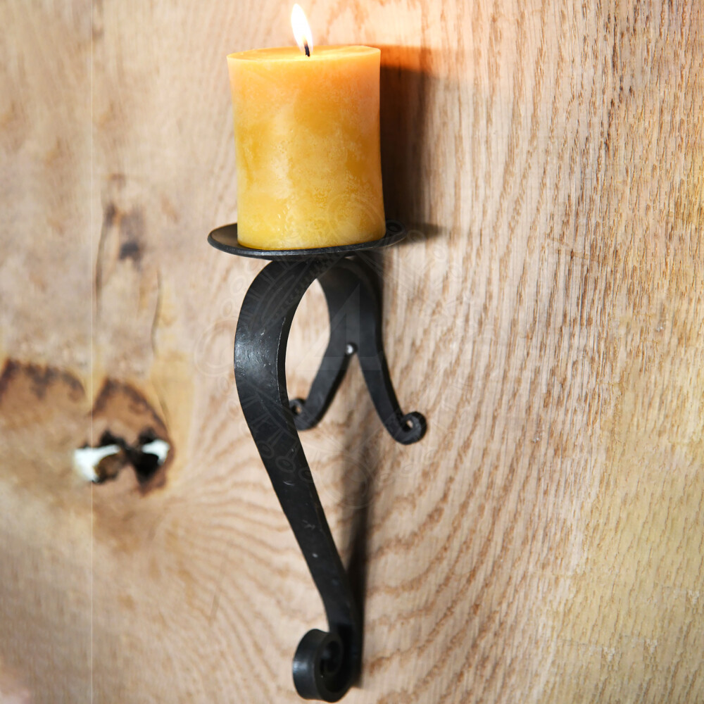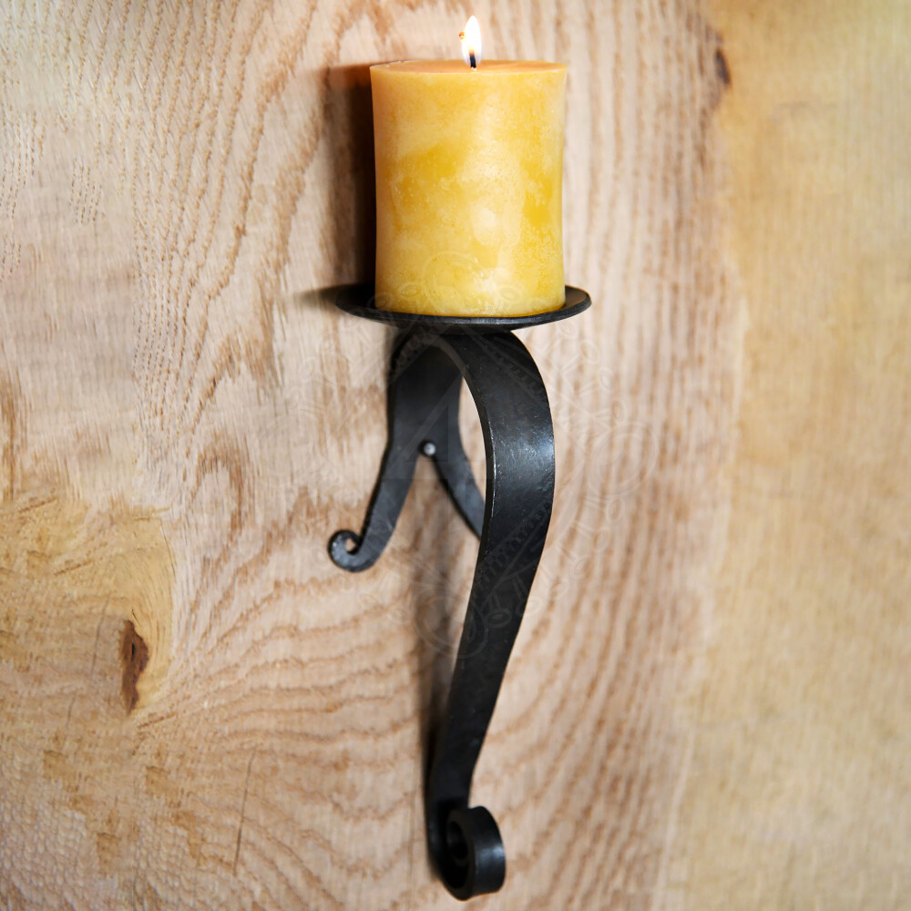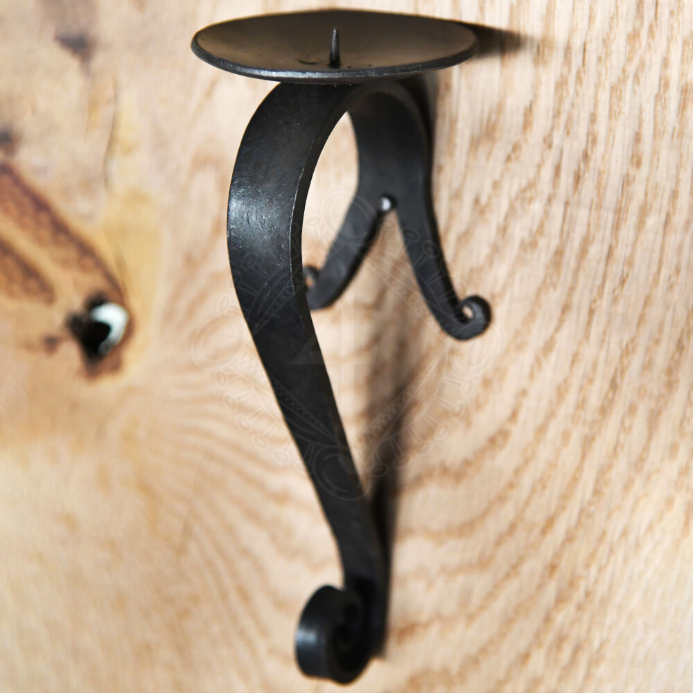 Nádherný ocelový ručně kovaný nástěnný svícen z kovárny Ulfberth. Svícen lze na stěnu připevnit pomocí dvou šroubů nebo hřebíků, které projdou otvory v zarolovaných koncích. Svícen má nýtovanou kruhovou odkapávací misku, která zabraňuje okapávání vosku ze svíčky na podlahu. Více informací k produktu ...