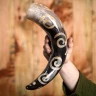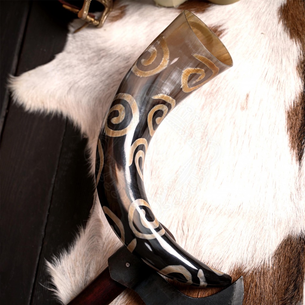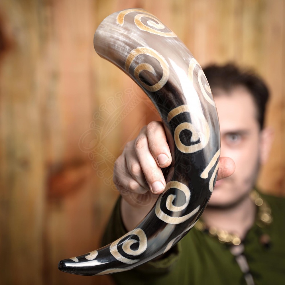 Picí rohy jsou sice neodmyslitelně spjaty s Vikingy, ale jejich historie je mnohem starší a bohatší. Byly používány napříč celou Evropou, zejména u keltských kmenů, pro které měly hluboký rituální význam. Právě keltskému umění dominoval motiv spirály, který najdeš na tomto rohu. Spirála je jedním z nejstarších symbolů lidstva, představuje cyklus života, smrti a znovuzrození, cestu slunce po obloze nebo duchovní růst. Držením tohoto rohu v ruce se tak dotýkáš nejen historie, ale i hluboké, prastaré symboliky.