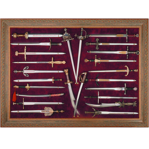 Sběratelský rám na miniatury mečů, 80x60 cm, červený samet