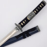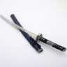 - Tsuba zobrazuje řekou se brodícího samuraje na koni