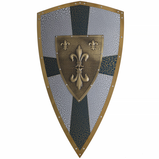 - Zdobení francouzskými liliemi a křižáckým křížem na pozadí