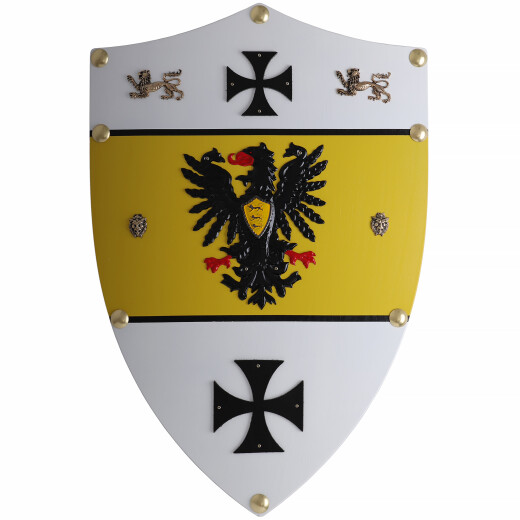 • Tento štít časově odpovídá období římského krále a císaře Fridricha I. Barbarossy zv. Rudovouse Barbarossa (12. století)