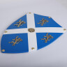 - Do kovové svorky na zadní straně štítu lze připevnit meč.