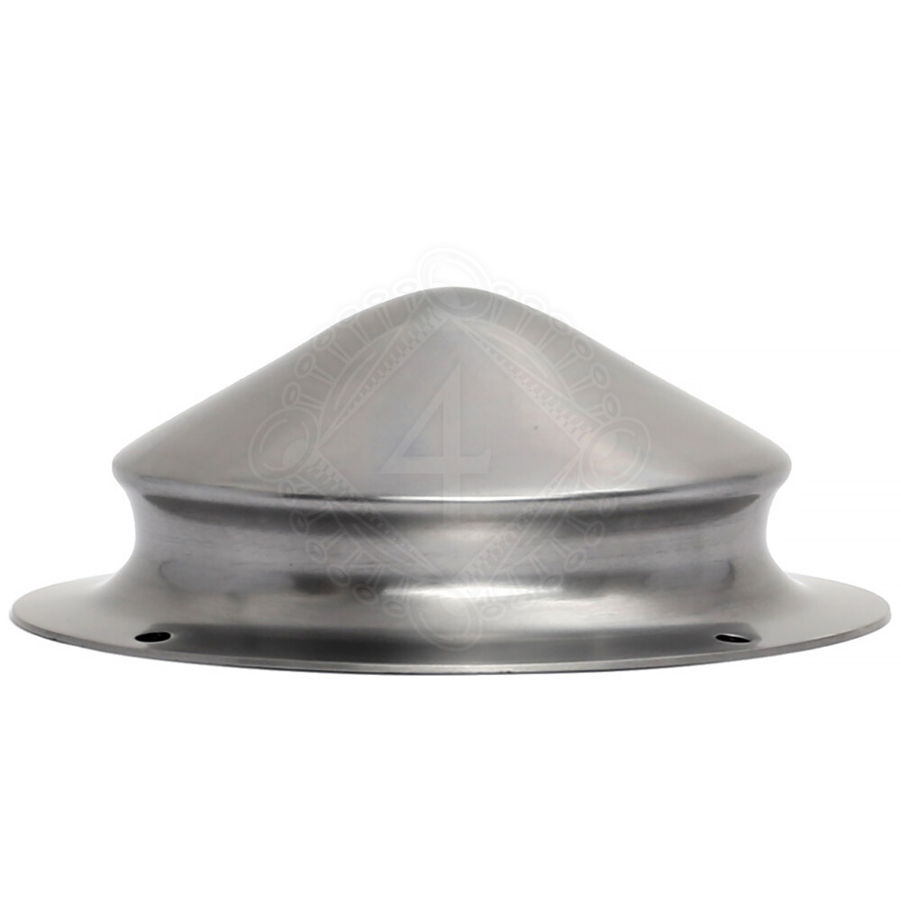 Puklice je vyrobena z ocelového plechu o síle 1,5 mm, což jí dává solidní odolnost. Má kónický tvar s mírně zaoblenou špičkou, který efektivně odráží seky a chrání ruku svírající štít. Ploché okruží je opatřeno čtyřmi předvrtanými otvory pro snadné a pevné přinýtování ke štítové desce. Zrcadlově leštěný povrch puklice skvěle kontrastuje s dřevem či malovanými motivy štítu a propůjčuje ti vzhled zámožného a zkušeného válečníka.