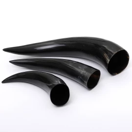 - Tělo rohu: Vyrobeno z pravé, eticky získané volské rohoviny. Jeho objem je přibližně 500 ml a délka se pohybuje mezi 30–40 cm.