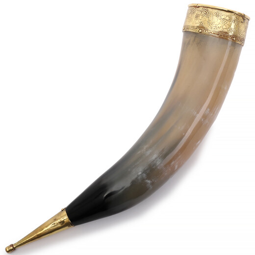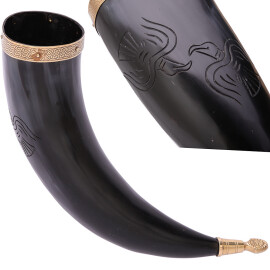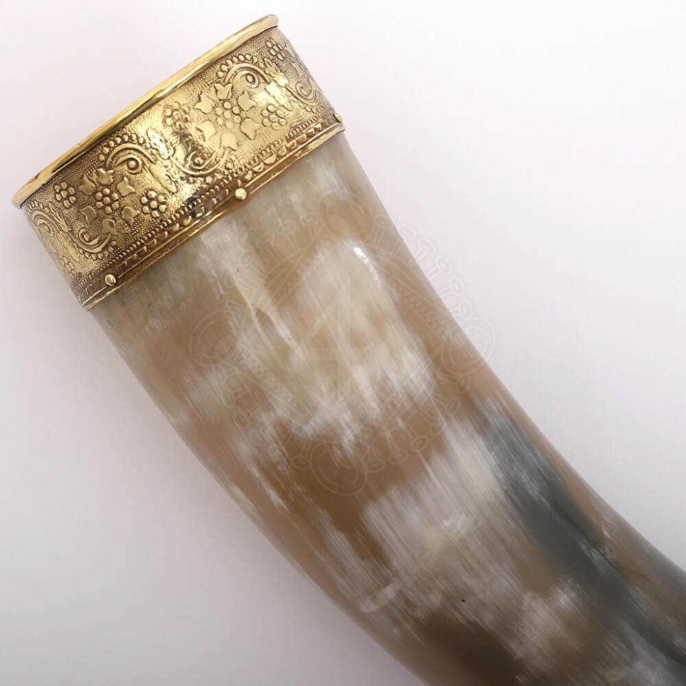 Vikinský picí roh se zdobeným mosazným kováním, 0,5 l