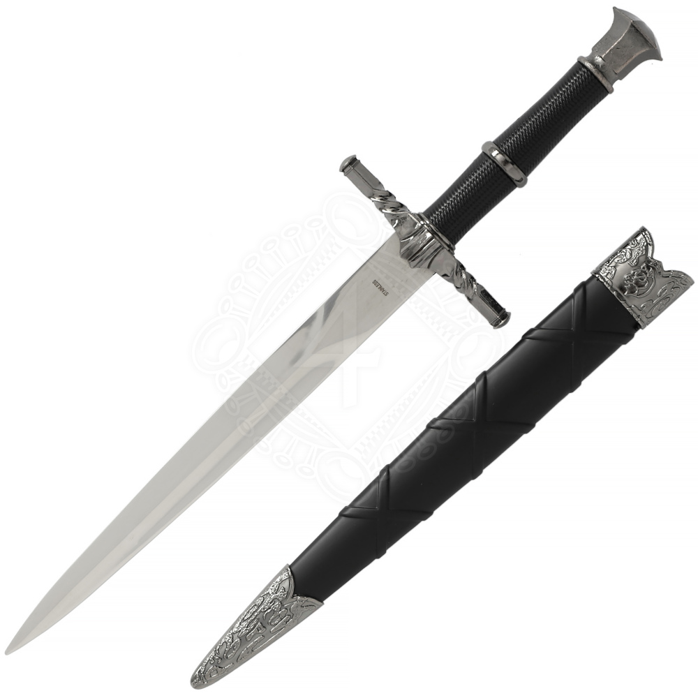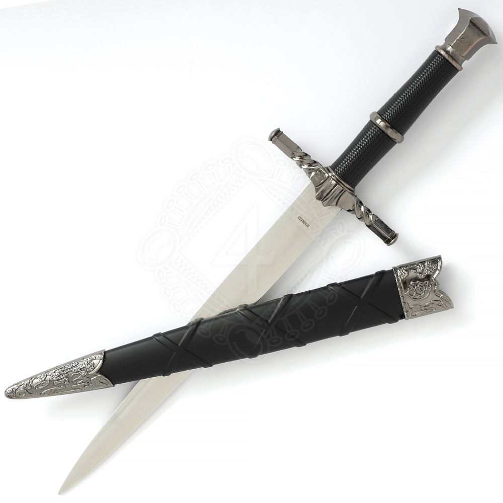 Meč Geralta z Rivie, hrdiny ze Zaklínače (The Witcher), jedné z nejúspěšnějších počítačových RPG her posledních let od vývojářského studia CD Projekt RED, v kompaktní verzi dýky. Je to povinná výbava pro každého fanouška této mnohokrát oceňované klasiky. Jak se na Zaklínače sluší a patří, nosí s sebou během svých dobrodružství vždy dva meče. Jedním je ocelový meč, který se používá v boji proti lidským protivníkům a normálním zvířatům, a druhým je stříbrný meč, který Geralt používá v boji proti všem druhům nestvůr. Čepel této repliky "ocelového meče" je vyrobena z nerezové oceli 420. Pochva je vyrobena z plastu s kovovým kováním. Více informací k produktu ...