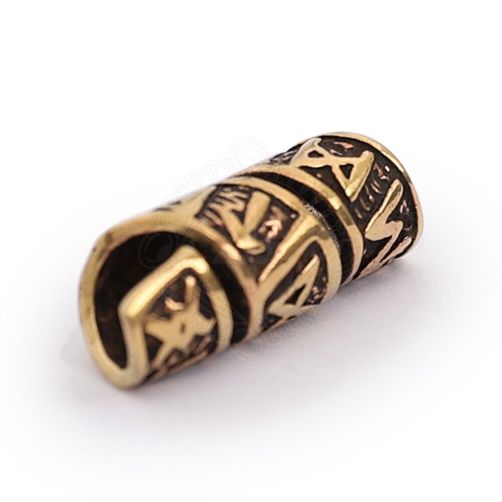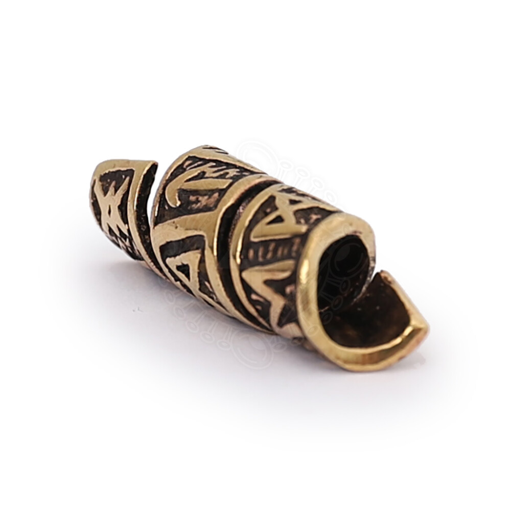 Korálek do vousů či vlasů s runovou spirálou z bronzu