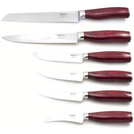 Profesionální sada nožů pro začátečníky v krásné krabičce skládající se z nakiri, univerzálního nože a santoku. Ergonomická rukojeť z micarty. Kroužek na rukojeti a čepel jsou sletované. Čepel prochází celou rukojetí a vytváří stabilní spojení s čepelí. Zvláštností této řady nožů je černý kovaný povrch. Více informací k produktu ...