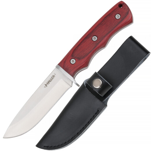 1xŠikovný a pevný outdoorový nůž. Čepel z nerezové oceli 440 je průchozí. Střenky ze dřeva Pakka je přišroubována na stopku čepele. Silná ocelová záštita zabraňuje sklouznutí ruky.