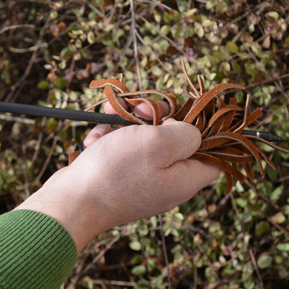 Tento čistič šípů je vyroben ze semišové hovězí kůže a je ručně pletený. Kožený střapec je vyroben z odolného štípaného veluru ve 2 různých barvách. Více informací k produktu ...