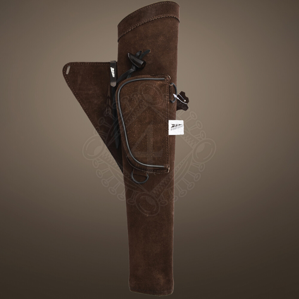 Velmi funkční a ekonomický boční toulec vyrobený z hnědého semiše, s připojenou kapsou na příslušenství. Vyberte prosím verzi pro praváky nebo leváky. Více informací k produktu ...