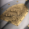 • Středová aplikace z mosazi s motivem tří korun ze štítu krále Artuše.