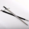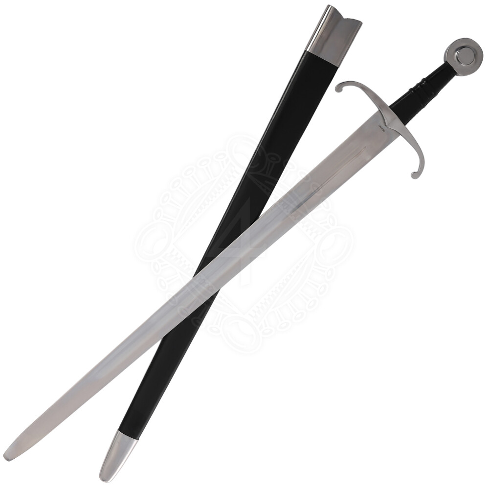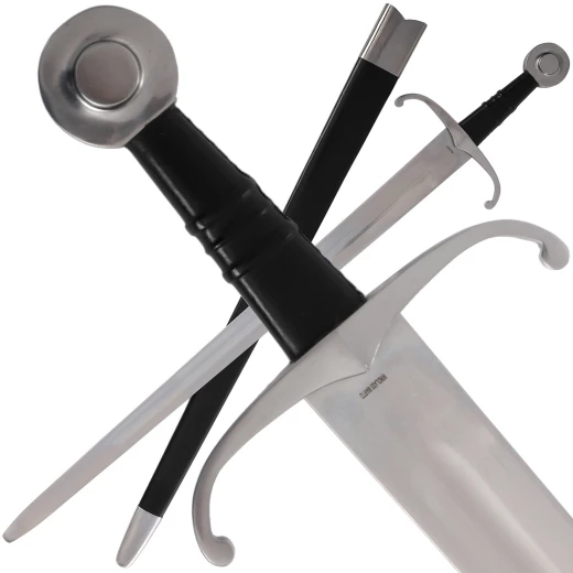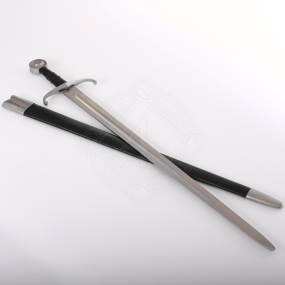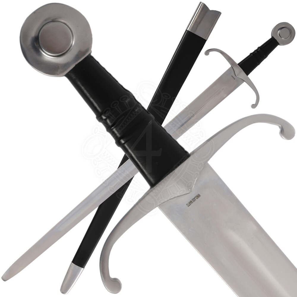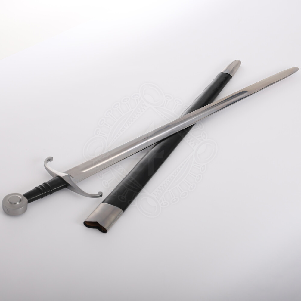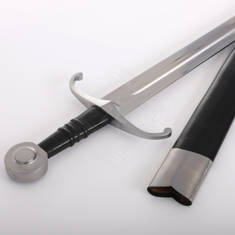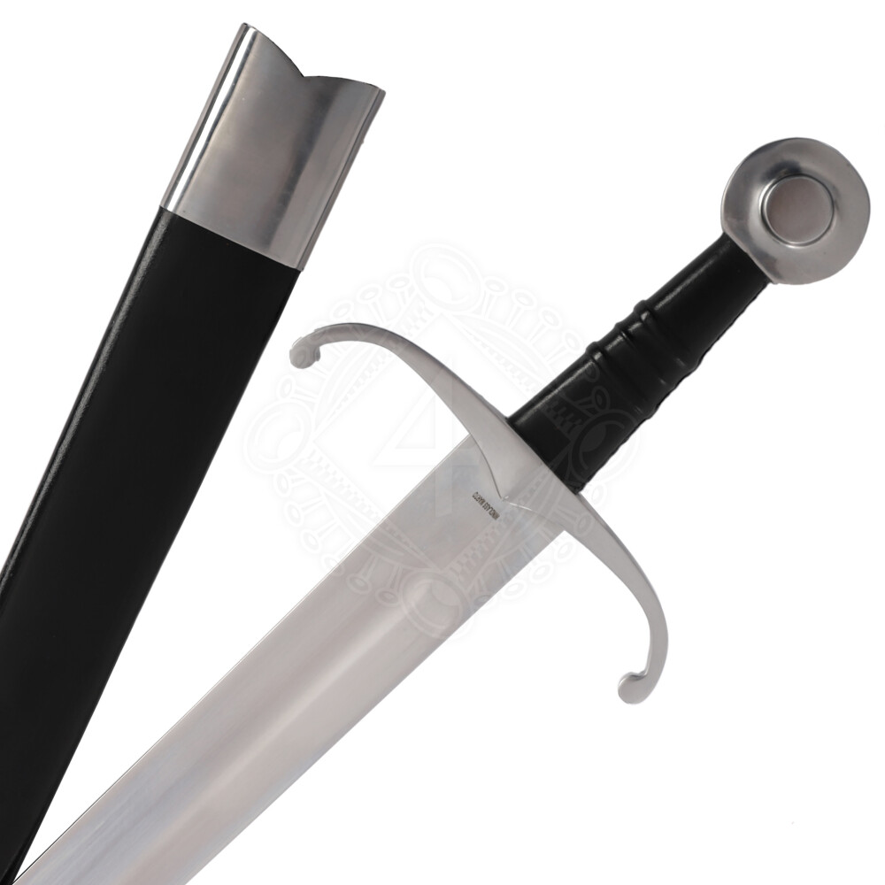 Tento historicky prozkoumaný meč má čepel se silnou hranou vyrobené z uhlíkové oceli 1065 s s průchozím řapem nýtovaným za ocelovou hlavicí. Je vhodný pro jevištní bojové scény a vede se jednou nebo jednou a půl ruky. Dřevěná rukojeť je obalená kůží. Dodávka je včetně koženého pouzdro s kovovým kováním. Bojový meč Šampion lze použít jako jednoruční nebo ruční a půl meč. Součástí je kožené pouzdro s kovovými doplňky. Nyní se plně soustřeďte na svou roli a hrajte! Více informací k produktu ...