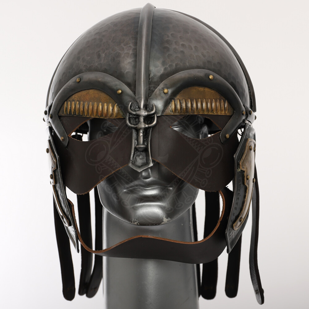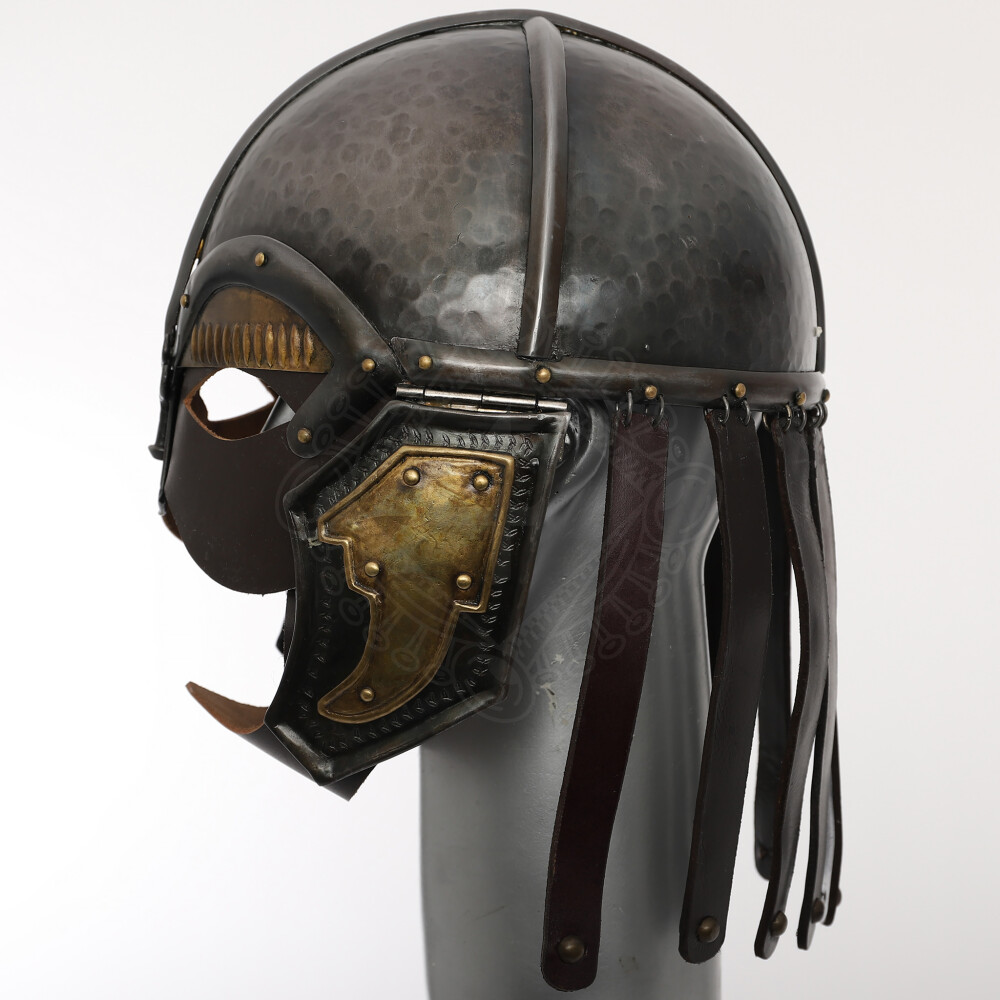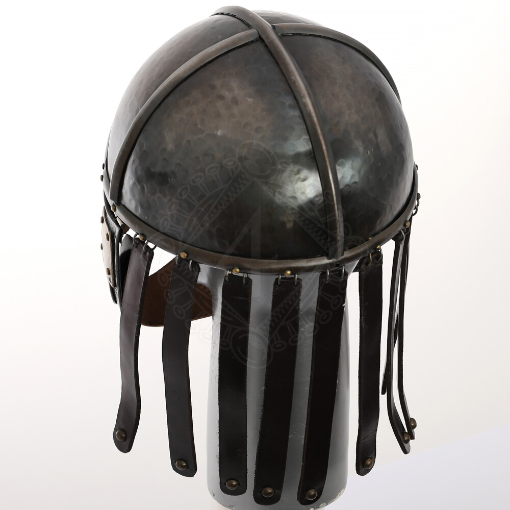 Tato hrozivě vyhlížející helma má vestavěnou koženou masku a pevné kožené řemínky svěšené ze zadní části zvonu. Zvon helmy je ručně bouchaný železného plechu síly 1,52mm (16 gauge) s patinovanou povrchovou úpravou. Více informací k produktu ...