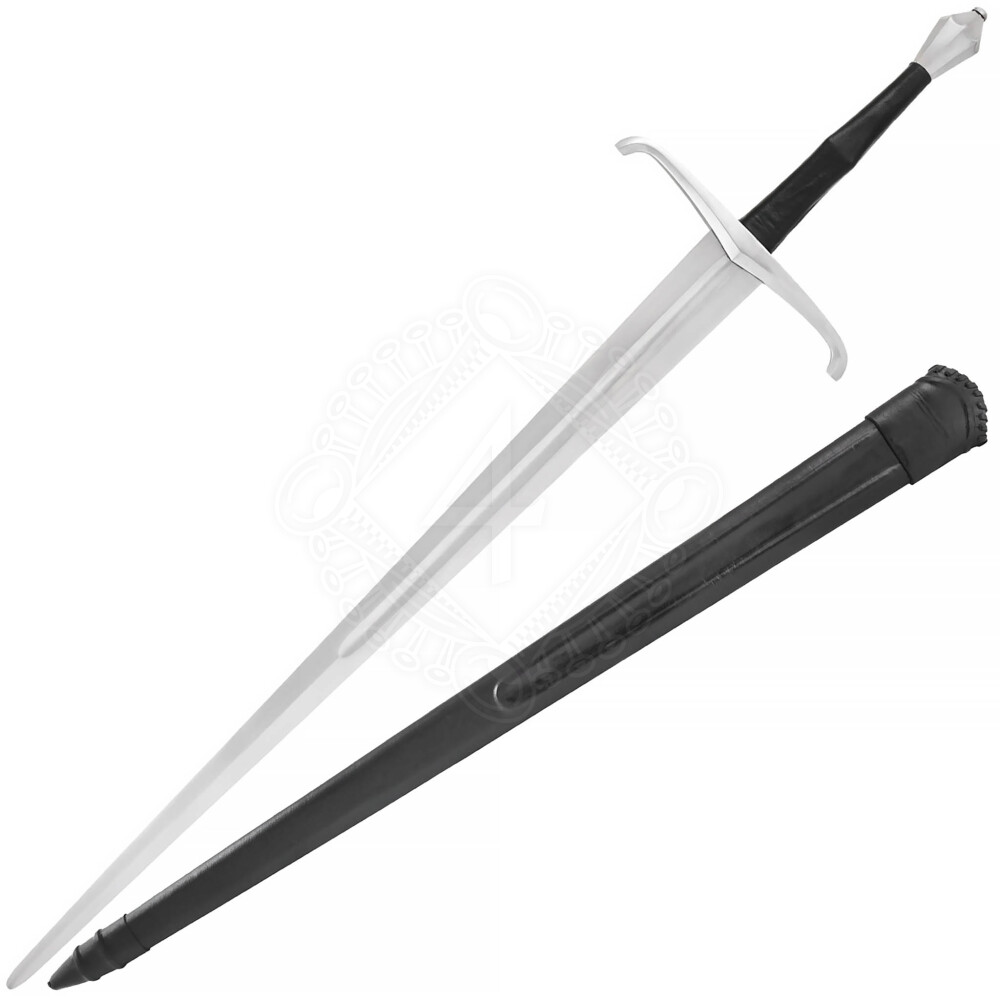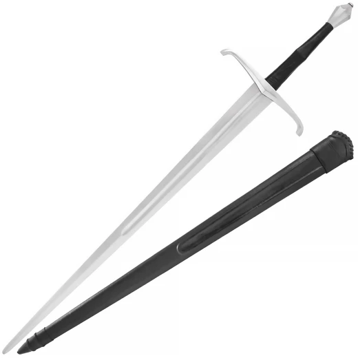 Toto je verze jedenapůlručního meče vhodná na scénický šerm. Stejný meč je k dostání také ve funkční verzi bez úprav pro scéniku: č. výrobku 0116341918.