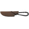 V drsném světě raného středověku byl nůž tím nejzákladnějším a nejuniverzálnějším nástrojem. Sloužil k přípravě jídla, jako jídelní příbor, k opracování dřeva, opravám výstroje a v krajním případě i k obraně. Tento model s celkovou délkou 20 cm je ideální pro všechny tábornické práce i jako stylový jídelní nůž na hostinách. Čepel má rustikální, tmavý povrch s viditelnými stopami po kování, což podtrhuje její ručně vyrobený charakter. Kožené pouzdro je pečlivě prošito a opatřeno poutkem pro snadné navléknutí na opasek. Je to perfektní volba pro re-enactment, LARP nebo pro každého, kdo oceňuje poctivé řemeslo.