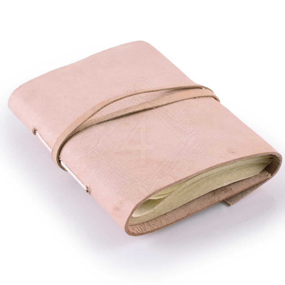 Zápisník je opatřen koženým řemínkem pro stylové převázání = uchování v zavřeném stavu.