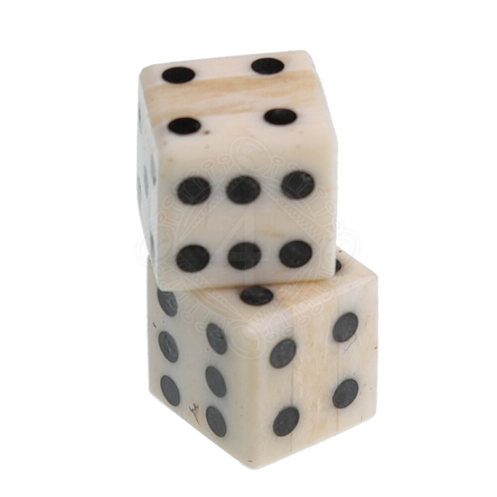 Tyto dvě kostky jsou ručně vyráběné z pravé kosti hovězího dobytka. Velikost kostek se kus od kusu lehce odlišuje. Světlá kost je vykládaná černými tečkami. Více informací k produktu ...