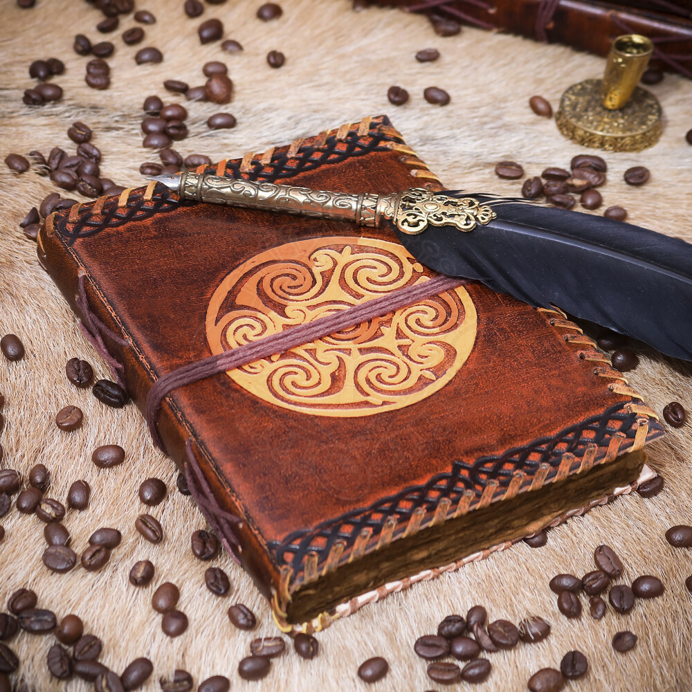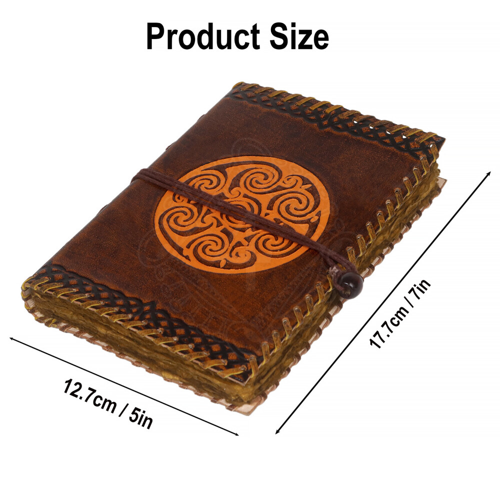 Kožený deník s keltskou spirálou a patinovaným papírem