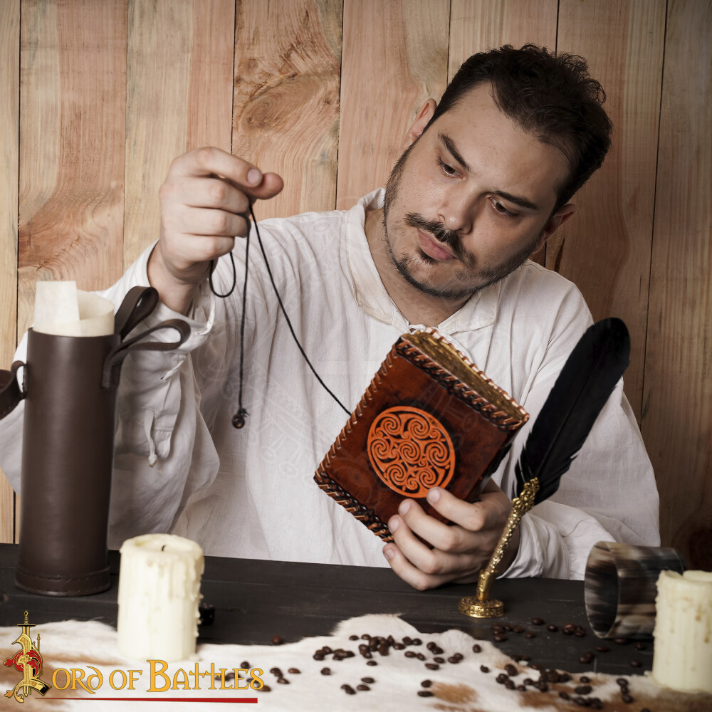 Probuď v sobě starodávného barda nebo kronikáře a svěř své myšlenky tomuto ručně vázanému koženému deníku. Jeho desky z pravé kůže zdobí nadčasový symbol keltské spirály a dekorativní prošívání, které mu dodává autentický vzhled. Díky praktickému koženému provázku s korálkem zůstanou tvé zápisky bezpečně ukryty. Tento zápisník není jen místem pro poznámky, ale artefaktem, který tě zve k tvoření. Více informací k produktu ...