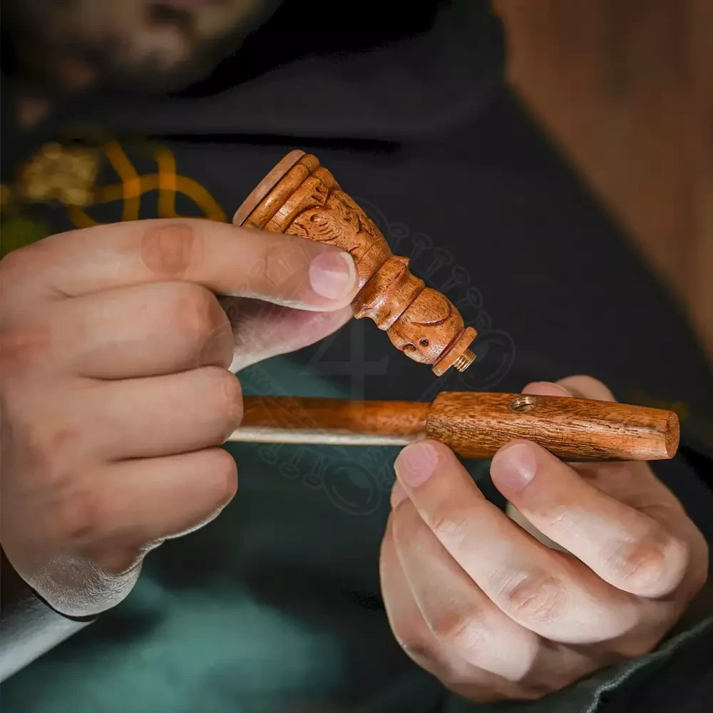Dopřej si chvilku klidu a zamyšlení s touto elegantní dlouhou kuřáckou dýmkou, jejíž design je inspirován stylem oblíbeným od 17. až do 19. století. Tento typ dýmky, známý jako „churchwarden“, byl symbolem kontemplace a uvolněné atmosféry. Je vyrobena z odolného a krásně žilkovaného akáciového dřeva s leštěným povrchem, který je příjemný na dotek. Hlavním prvkem je ručně vyřezávaná hlavička se zdobnými motivy, která dodává dýmce jedinečný charakter. Ať už jsi sběratel, nadšenec do historie, LARPu, nebo si chceš jen vychutnat svůj oblíbený tabák v tradičním stylu, tato dýmka je skvělou volbou. Více informací k produktu ...