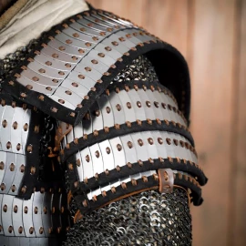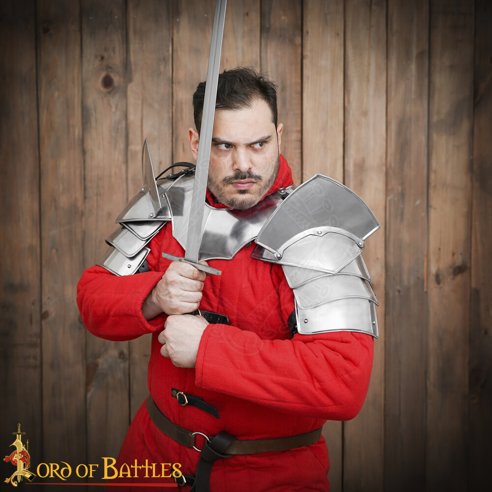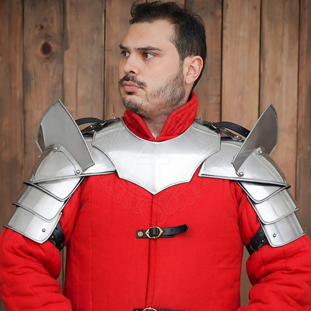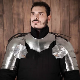 Ochraň svá ramena a krk s těmito impozantními rytířskými nárameníky! Jsou vyrobeny z 1,2mm silné měkké oceli a jejich design zahrnuje kloubové pláty pro volnost pohybu a výrazné nýtované lamače čepelí, které nejenže skvěle vypadají, ale poskytují i dodatečnou ochranu. Ideální volba pro každého rytíře či těžkooděnce ve tvém oblíbeném fantasy světě, na LARP nebo středověké slavnosti. Více informací k produktu ...